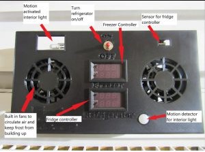 Manual for Universal Hvac Controller This controller eliminates all your existing Norcold or Dometic controls. So that means that your front display panel, your interior light, and your rear control board will no longer work. This new controller has its own temp control devices and thermostats, as well as a light bulb that is motion activated. It also features two built-in fans that blow air towards the fins which forces the cold off the fins and into the fridge box, giving you a more even temp throughout as well as keeping frost from building up on the fins. The switch on the front is what you will use to turn the entire refrigerator on/off the fridge. The switch should be in the up position to turn the fridge on.